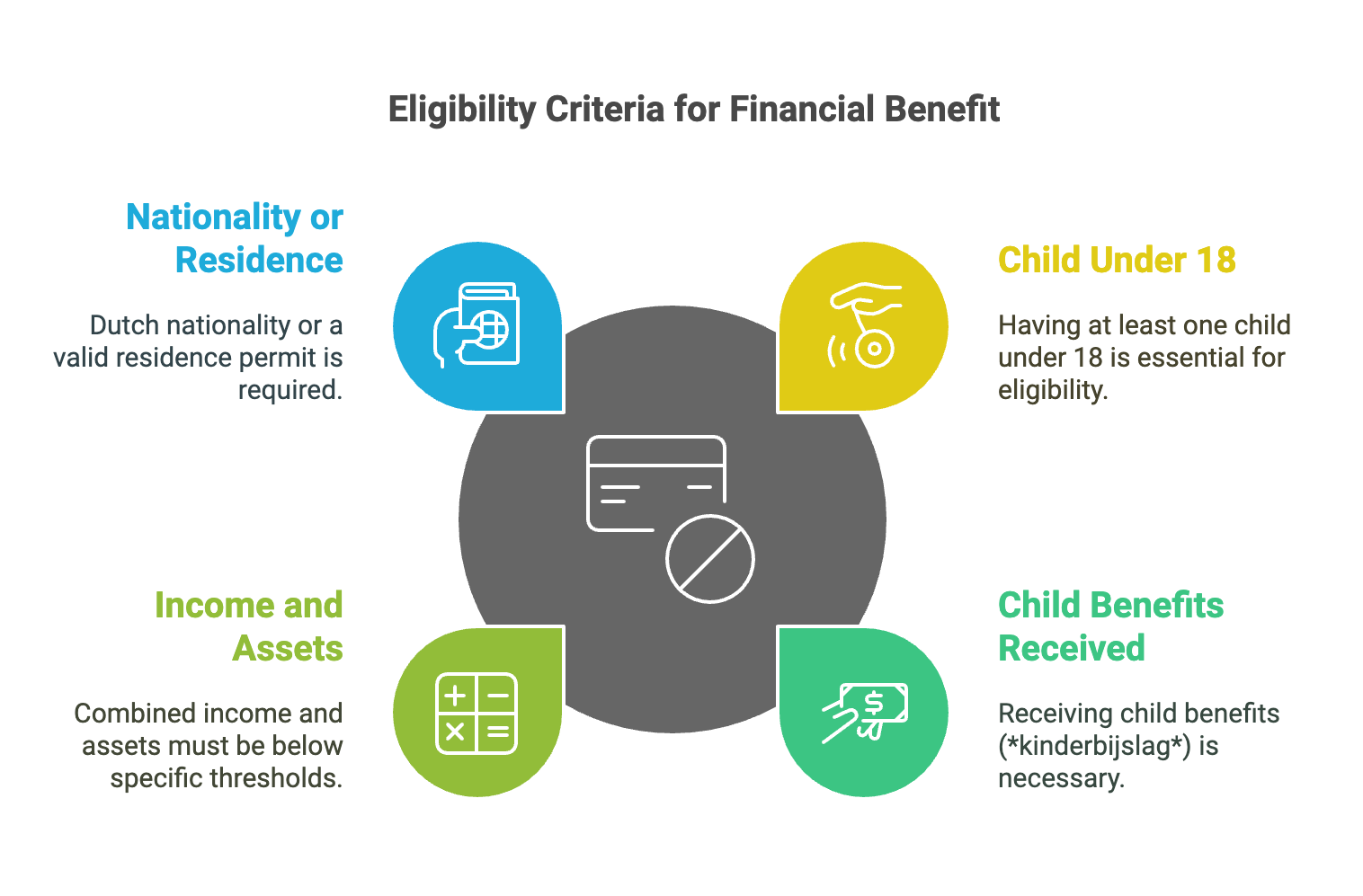 Certain situations may affect your eligibility or how the benefit is paid. For example, in cases of co-parenting, only one parent can receive the child-related budget. This is typically the parent who is already receiving the kinderbijslag. Additionally, even if you are no longer receiving child benefits for a child aged 16 or 17, you may still qualify for the child-related budget under specific conditions.