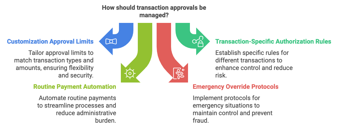 The beauty of modern banking is its flexibility. We've seen countless ways to customize authorization systems. Some businesses set different approval requirements based on the type of transaction. Others create time-based rules - like single approval for regular suppliers but dual approval for new ones.