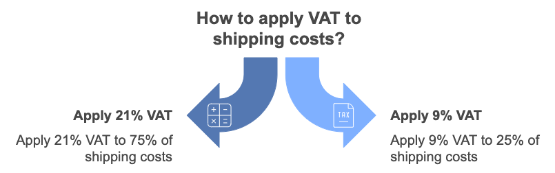 - You would charge 21% VAT on 75% of the shipping costs and 9% VAT on 25% of the shipping costs.